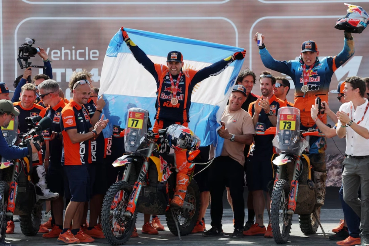 Este viernes se lo notó con fe a Luciano Benavides. Pese a perder el liderazgo en la categoría motos del Rally Dakar y sabiendo de los 3.20 minutos que le había sacado Ricky Brabec (Honda), no tuvo nada que perder. “La carrera hay que correrla y hay que terminarla, así que todavía faltan 100 kilómetros”, lanzó y esa confianza lo llevó a salir a matar o morir para alcanzar en los tiempos al estadounidense y luego sacar un margen para llevarse su primera victoria en la carrera más dura del mundo. En su noveno intento, lo consiguió a bordo de su KTM del equipo oficial y junto con su hermano Kevin, son los únicos dos sudamericanos en imponerse en la categoría reina en el evento madre de Rally Raid.