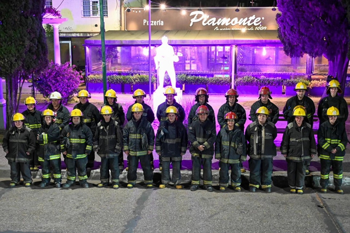 Iluminaron el monumento al Bombero en la Costanera y convocaron a la comunidad a sumarse a las actividades de concientización. Este jueves habrá una jornada informativa en el cuartel.