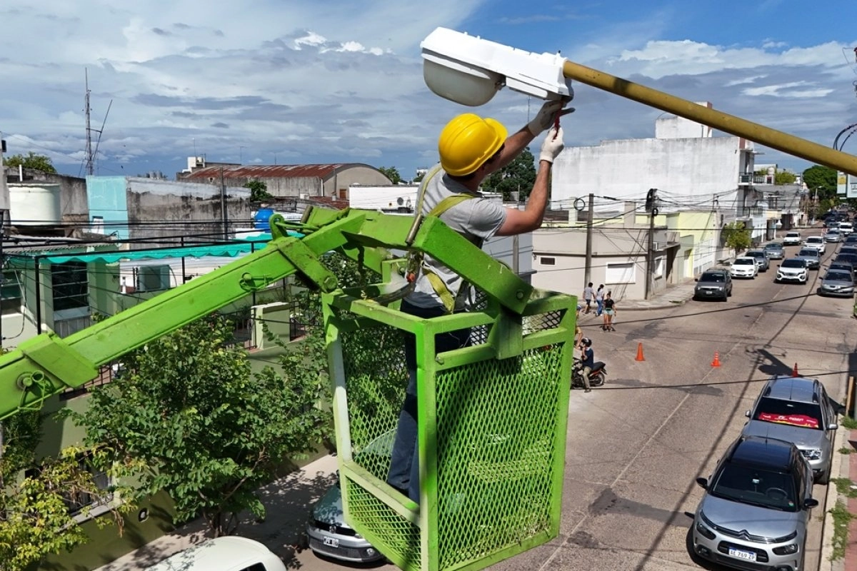 Se puso en marcha el lunes la renovación total del alumbrado público tras la llegada -entre diciembre de 2025 y febrero de 2026- de más de 8.000 equipos con tecnología LED. La intervención comenzó en la intersección de Luis N. Palma y Alsina, en la zona aledaña a la cancha del Club Juventud Unida, y avanzó por la primera arteria en dirección al este.