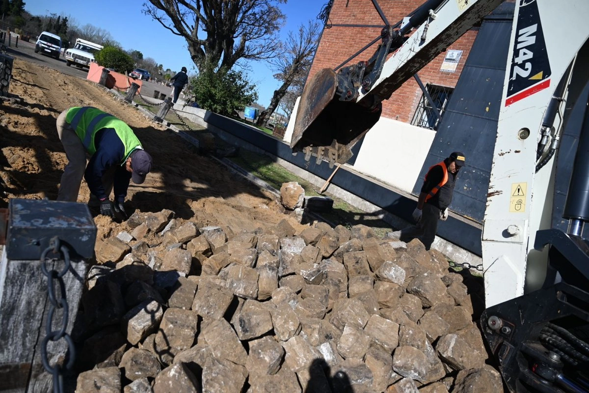 Los trabajos, a cargo de la Cooperativa “El Serrucho”, incluyen la renovación total del adoquinado y la reconstrucción integral de la base donde se colocarán nuevos bloques de pavimento articulado recto de 8 cm de espesor, en tonos rojo y gris. Para ello, se construirá un contrapiso de hormigón armado H13 de 15 cm de espesor, sobre el cual se dispondrá una capa de 4 cm de arena compactada, a fin de evitar futuras deformaciones ocasionadas por las vibraciones del tránsito.