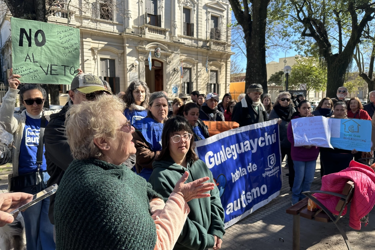 Carina Leonardi, presidenta de la asociación civil TGD Padres TEA Gualeguaychú, fue otra de las voces que se alzó desde Plaza Urquiza. “Este veto se anunció con un desparpajo brutal, con una ironía asquerosa. Uno no elige tener discapacidad, y existen derechos para las personas con discapacidad. Existen apoyos, están en todo el mundo”, subrayó.