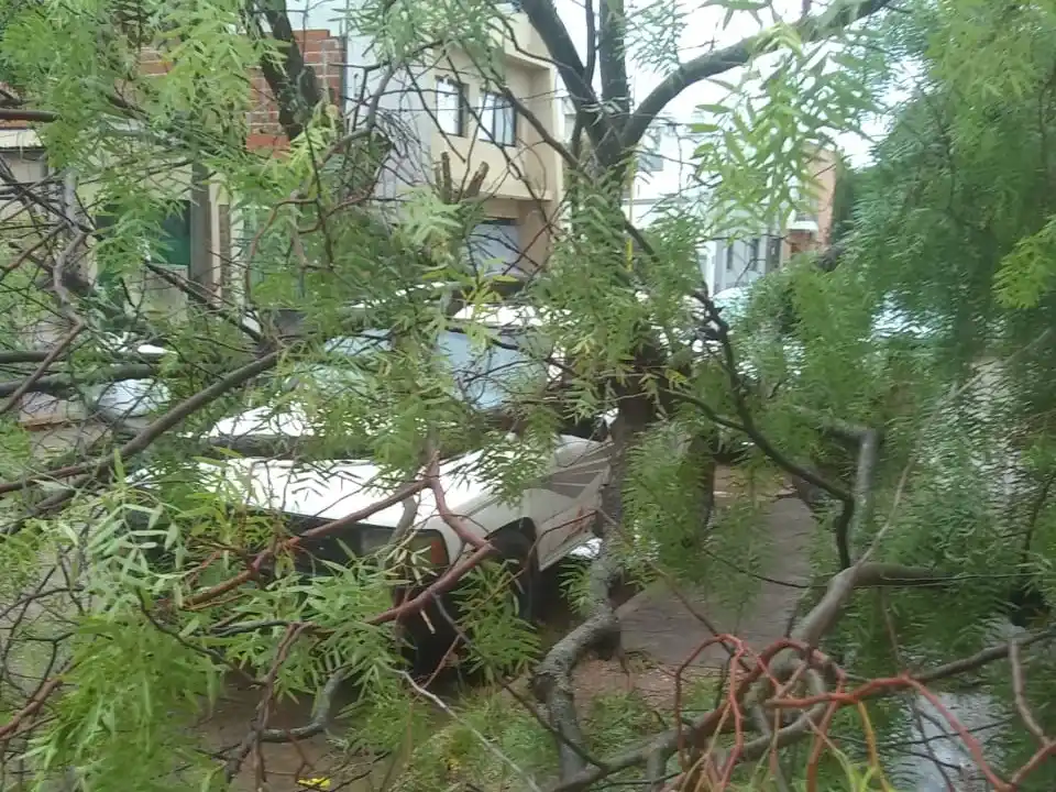 El breve pero intenso temporal de la tarde dejó numerosos árboles y postes derribados, con daños en vehículos e inmuebles en varios puntos de la ciudad.