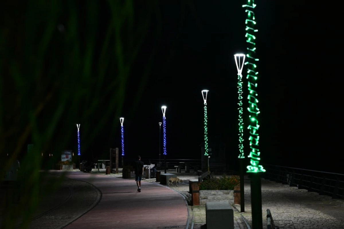 La Dirección de Energías completó tareas de embellecimiento en la Costanera y el Paseo del Puerto mediante la colocación de guirnaldas lumínicas sobre más de 120 columnas del alumbrado público.