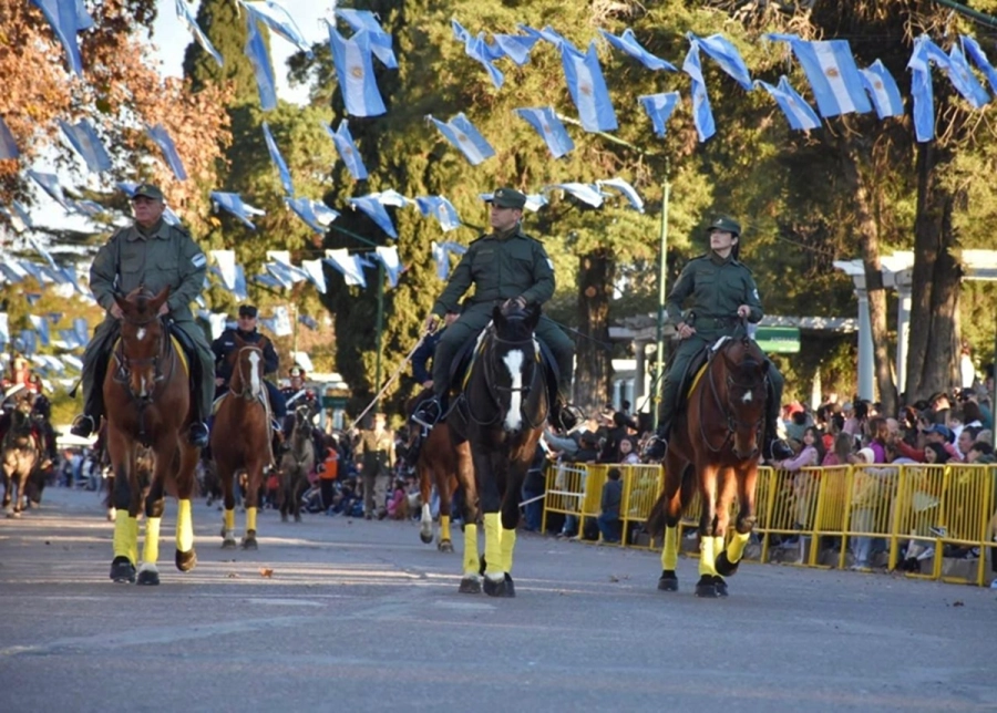 “Fue a lomo de caballo que se formaron caminos, se defendieron fronteras y se construyó la Patria, recordándonos que la historia se escribió al galope, al viento, y con honor”, leyeron desde la locución del desfile al paso del personal del Escuadrón 56.