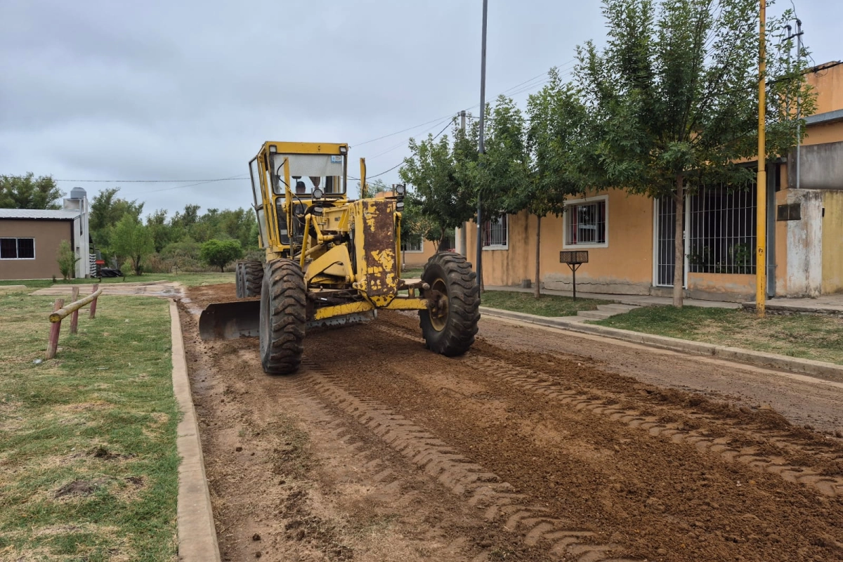 Para el desarrollo de los trabajos intervinieron cuadrillas municipales y maquinaria pesada, entre ellas una destinada a la remoción de suelo excedente y una motoniveladora que cumple funciones de nivelación y conformación del camino. Estos equipamientos permitieron ordenar la superficie, corregir deformaciones y preparar la base para el refuerzo del firme.