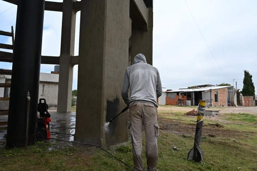 Una vez concluida esa etapa, se avanzará con la aplicación de pintura hasta la altura del primer anillo estructural. La intervención parcial responde a criterios técnicos y presupuestarios. El tratamiento del resto del tanque se proyecta para una instancia posterior, ya que requiere equipamiento específico y personal especializado en trabajos de pintura en altura, lo que implica una planificación diferenciada y mayores recursos.