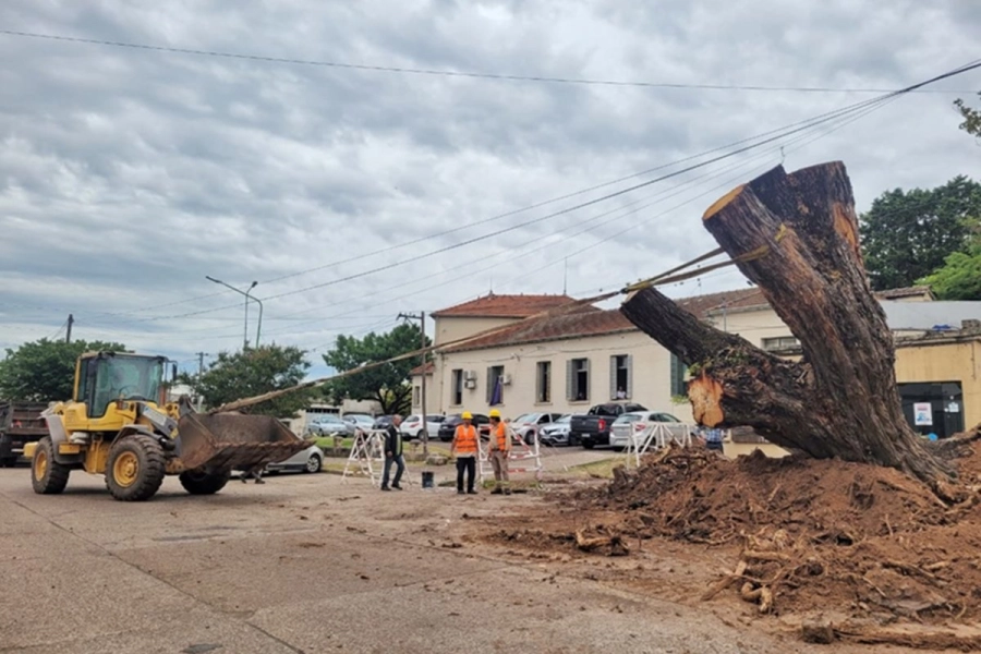 Con más de un siglo, la Tipa mostró señales claras de descomposición. El trabajo evitó peligros y despejó un acceso clave al edificio sanitario. La decisión se tomó a tiempo y con un operativo poco habitual por su escala.