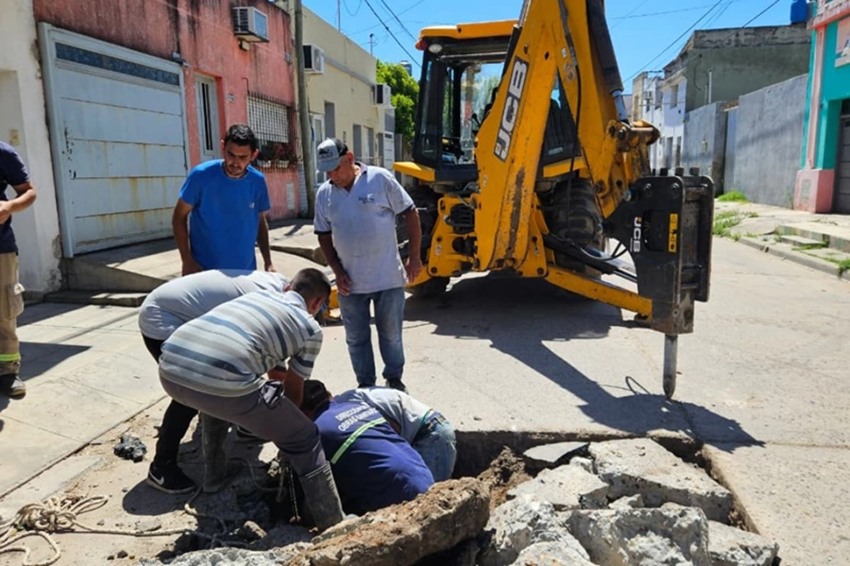 En la obra participó una cuadrilla de la Dirección de Obras Sanitarias, con el apoyo de una pala cargadora, una retro con martillo percutor y un camión de la misma dependencia.