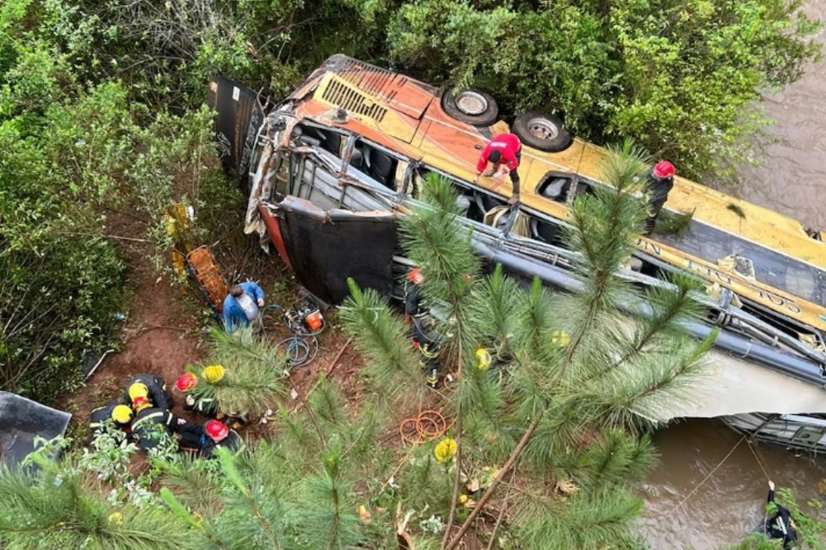 Como consecuencia del violento impacto, el ómnibus perdió el control, atravesó el guardarraíl del puente y cayó al cauce del arroyo Yazá, a varios metros de profundidad. En tanto, el auto quedó destrozado sobre la banquina, a escasos metros del lugar del choque.
