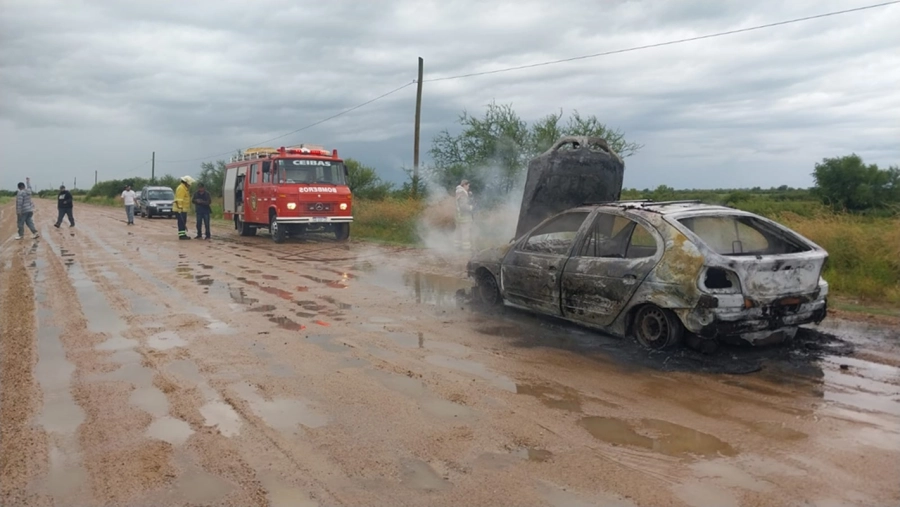 La dotación del móvil N° 24 trabajó con línea de agua hasta sofocar y enfriar el vehículo, sin que se registraran heridos.