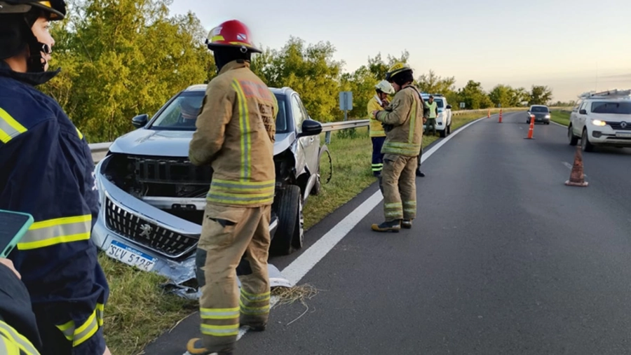 A las 19, nuevamente en la Autovía 12 pero esta vez a la altura del kilómetro 157, un Peugeot 3008 con dos ocupantes uruguayos que viajaban desde Montevideo hacia Buenos Aires, se despistó en una curva, impactó contra el guardarrail y lo sobrepasó, quedando detenido en la mano rápida del sentido contrario.