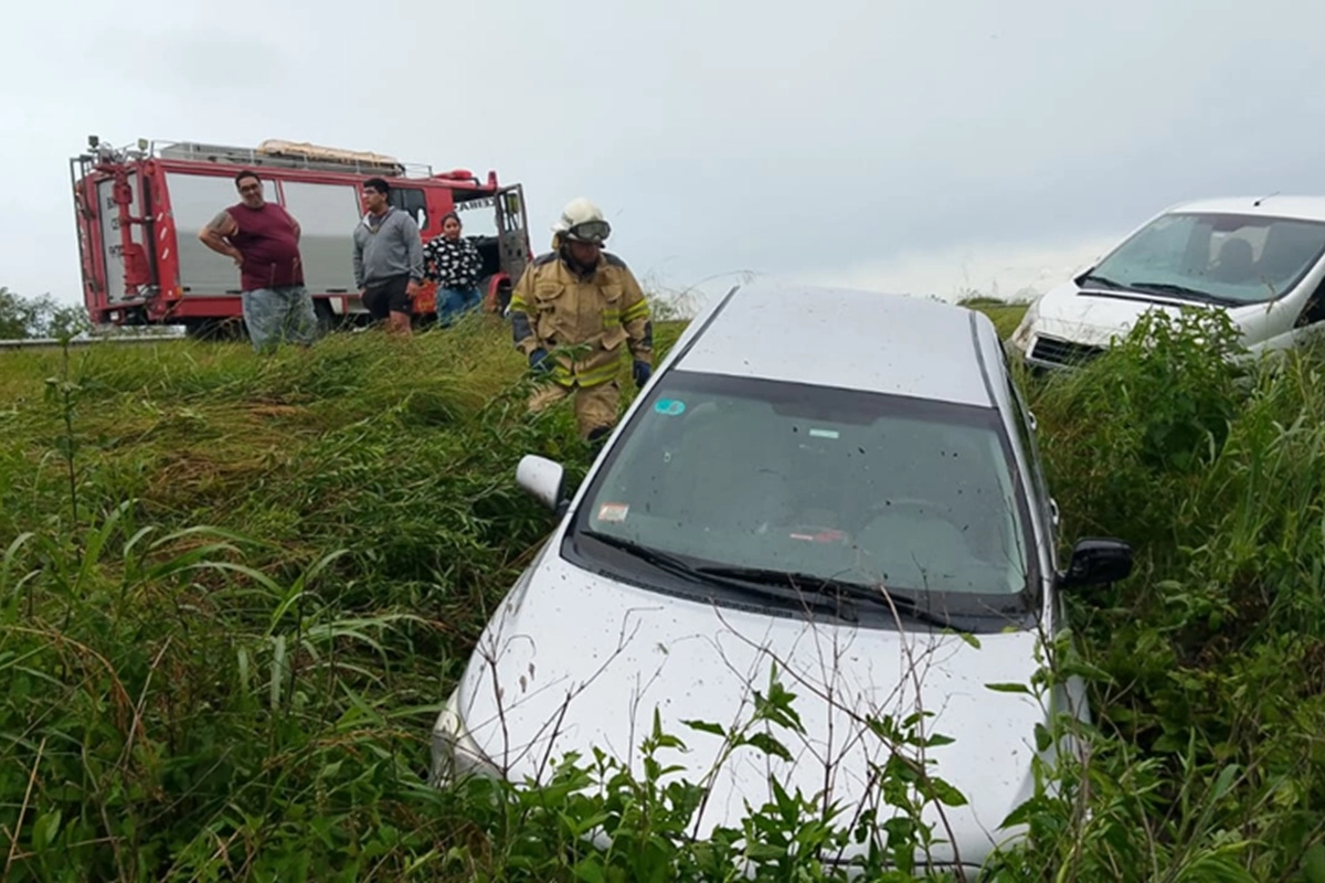 La primera intervención ocurrió a las 7.20, en el kilómetro 156 de la Autovía 12, en sentido Buenos Aires – Entre Ríos. Allí, un Toyota Corolla y un Peugeot Expert, que era llevado de tiro por el primer vehículo, se despistaron y terminaron en la zona del préstamo.
