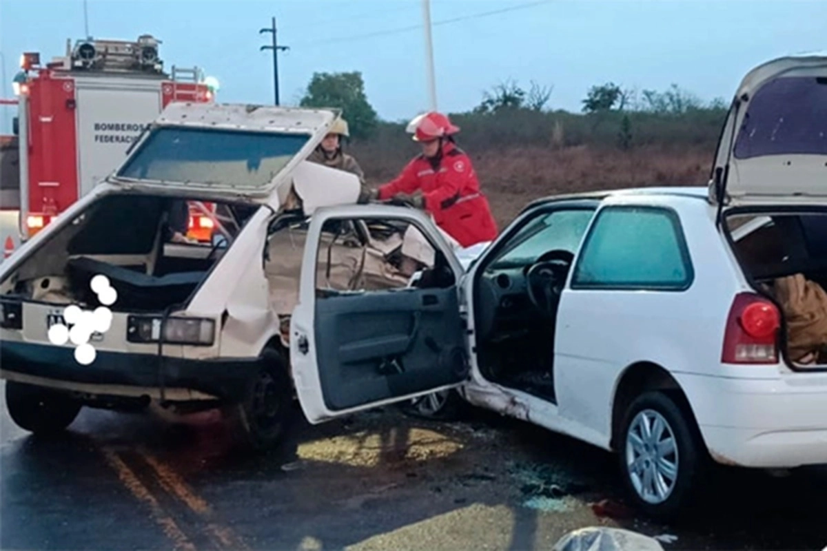 Un impactante accidente de tránsito se registró en las primeras horas del sábado en uno de los accesos a la ciudad de Federación, a la altura de la zona denominada ex Martina. El hecho tuvo lugar alrededor de las 6:30, cuando dos vehículos que se desplazaban en direcciones opuestas colisionaron de manera frontal, dejando como saldo cinco personas heridas, entre ellas una menor de edad.