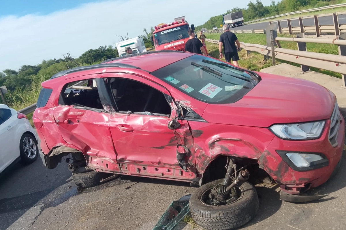 Este viernes por la tarde se produjo un siniestro vial en la Autovía Nacional Nº 12, a la altura del kilómetro 152, en el puente del Arroyo Grande. Una Ford Ecosport que viajaba desde Corrientes hacia Buenos Aires perdió el control y terminó impactando contra el guardarrail de c
