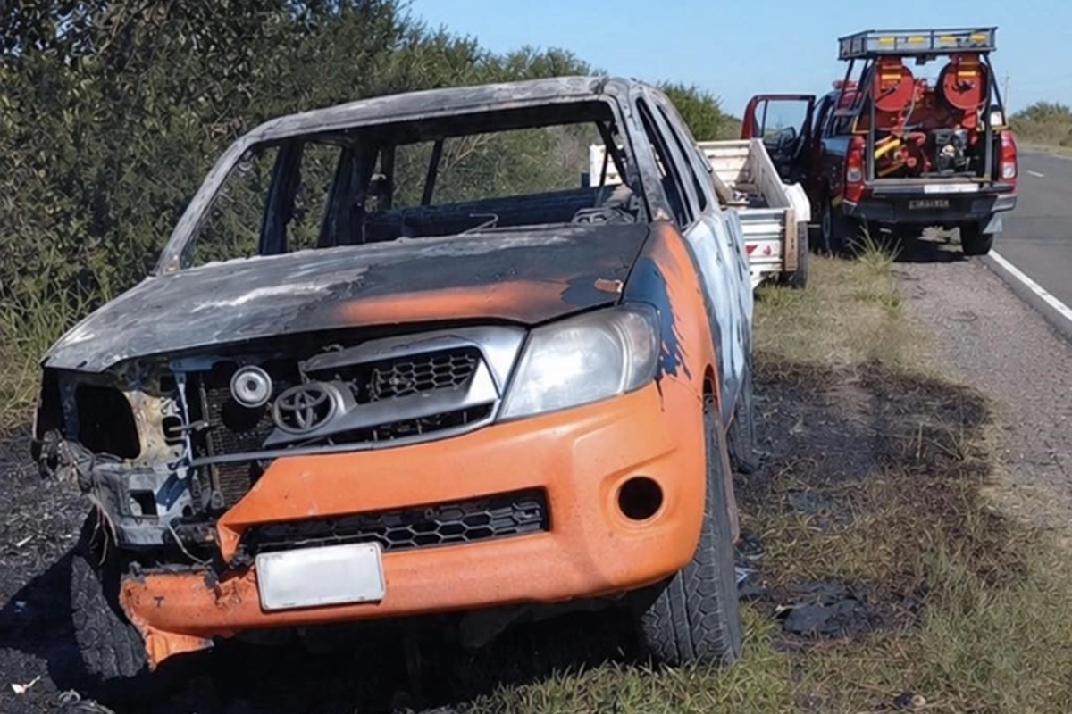 El llamado alertó sobre el incendio de una camioneta perteneciente a una empresa de revestimientos de Urdinarrain, cuyo conductor también es oriundo de esa ciudad. El rodado circulaba en sentido sur-norte y el siniestro se originó a la altura de Línea 25.