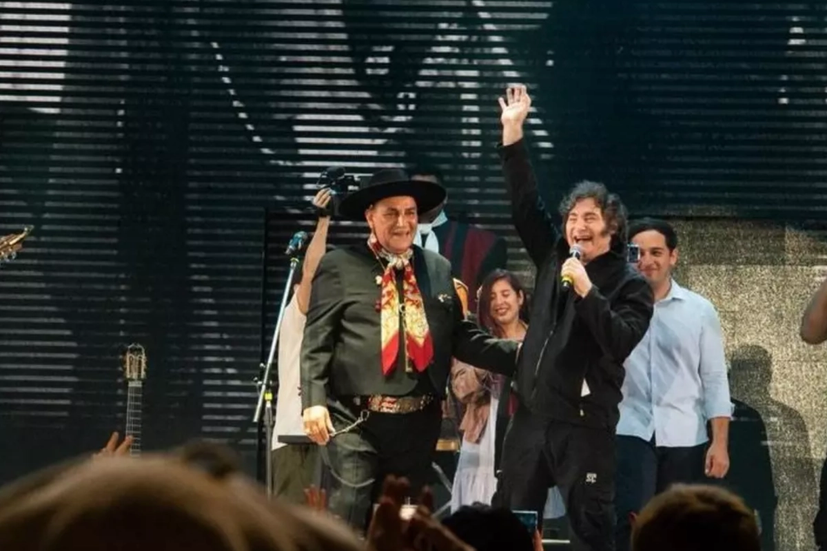 Sin embargo, ante la insistencia del artista, Milei cedió y subió al escenario. “Venga, venga. Vamos a poner la letra ahí para que cante. Canta rock, canta las de Favio, ¿cómo no va a cantar con el Chaqueño?”, dijo antes de fundirse en un abrazo con el mandatario.