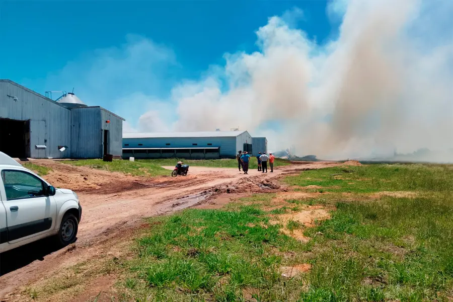 Un incendio de grandes proporciones destruyó este mediodía un galpón con pollos perteneciente a la empresa EFS Agro, ubicada en el kilómetro 166 de la Ruta Nacional 127, en el ingreso a Federal. El episodio ocurrió alrededor de las 12:20, cuando personal policial observó una densa cortina de humo en la zona y se dirigió al lugar para verificar la situación.