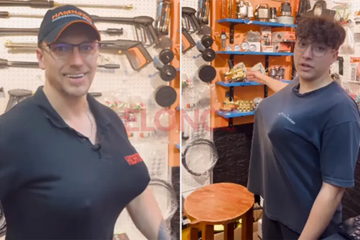 “Nos criticaron que no teníamos mujeres trabajando en nuestro negocio, que un par de lolas podía vender mucho más que nuestra cara, y ahora… qué me decís?”, dice el hombre que aparece en el video y tras ello se muestran con busto femenino y publicitando las herramientas que tienen para la venta en el local.