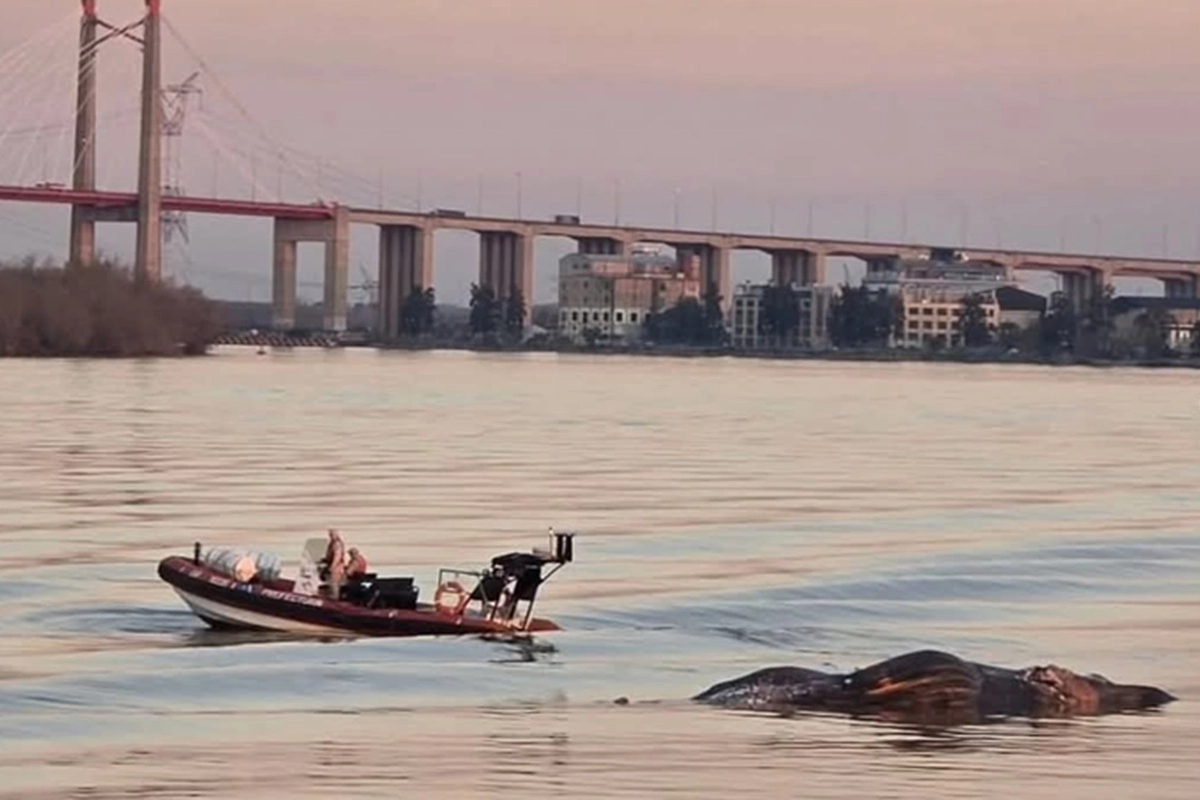 A una semana de la ballena muerta que fue encontrada en Costanera Norte, un ejemplar similar apareció sin vida flotando en el río Paraná, debajo del puente Mitre, frente a la costa zarateña.