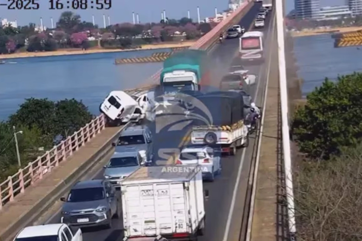 Un violento accidente de tránsito desató un caos vehicular en el puente General Belgrano, que une Chaco con Corrientes. Un choque en cadena afectó a 15 vehículos. Hay ocho personas heridas.