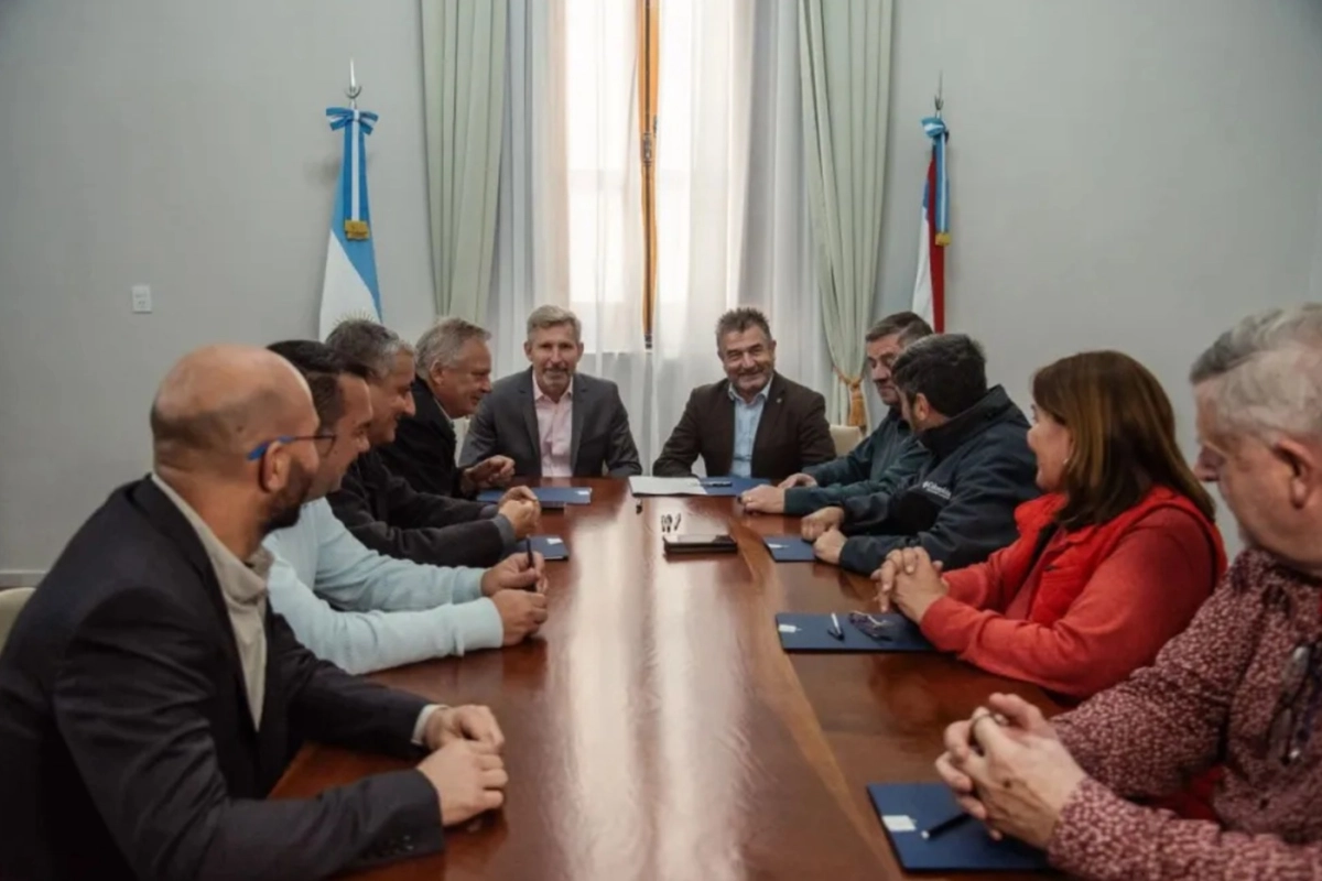 El gobernador Rogelio Frigerio acompañó al ministro de Seguridad y Justicia, Néstor Roncaglia, en la firma de convenios del Fondo Provincial de Seguridad con ocho municipios y comunas entrerrianas, para fortalecer la inversión en prevención del delito.